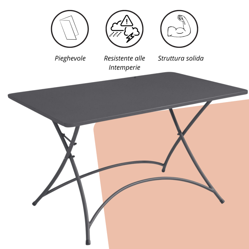 Grazie alla sua struttura pieghevole e leggera, è facile da spostare e riporre, rendendolo una scelta perfetta per chi cerca un tavolo versatile e funzionale per il proprio spazio esterno.