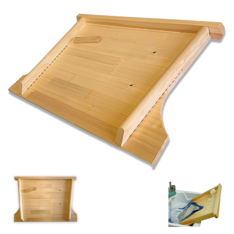 L'asse da lavare può essere regolata per ogni lavello, infatti puoi scegliere tra le 2 misure quella che si avvicina maggiormente al tuo lavatoio, come funziona? Molto semplice, infatti tagliando le alette finali l'asse si adatterà perfettamente al tuo lavabo da lavoro.