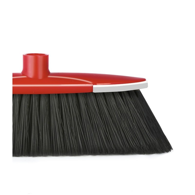 Questa scopa unisce efficienza e delicatezza, essendo ideale per tutti i tipi di pavimento, inclusi quelli delicati come il parquet. I suoi morbidi fili in nylon assicurano una rimozione efficace di polvere e sporco, mentre il bordo paracolpi in gomma protegge mobili e pareti.