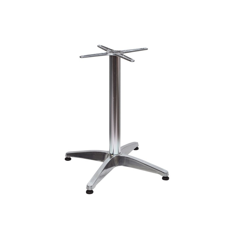 Basamento per tavoli da bar o ristorante con quattro razze, adatto sia per un uso interno che esterno. Prodotto ideale per le forniture professionali come bar, ristoranti, pub o birrerie. Può anche essere utilizzato per abitazioni private. La gamba centrale consente di recuperare spazio a terra e l'ingombro ridotto permette di posizionare diversi tavolini all'interno del locale aumentando così il numero dei coperti. Questa base ha un ingombro della superfice d'appoggio al suolo di 44 x 44 cm e una altezza di 70 cm. Può essere abbinata con piani rotondi dal diametro massimo di 70 cm o con piani quadrati con una dimensione massima di 70x70 cm. Non consigliamo piani di misure superiori perchè il peso ridotto della base, che aiuta lo spostamento dei tavoli, renderebbe i piani di dimensioni maggiori meno stabili. Consigliamo un altro tipo di base con peso maggiore e portata maggiore. CARATTERISTICHE: