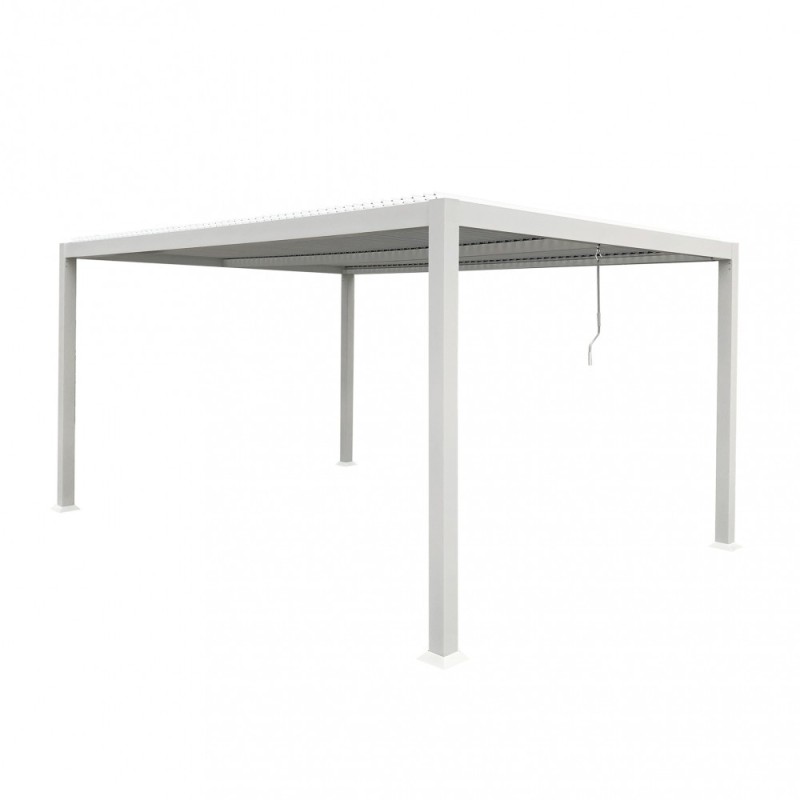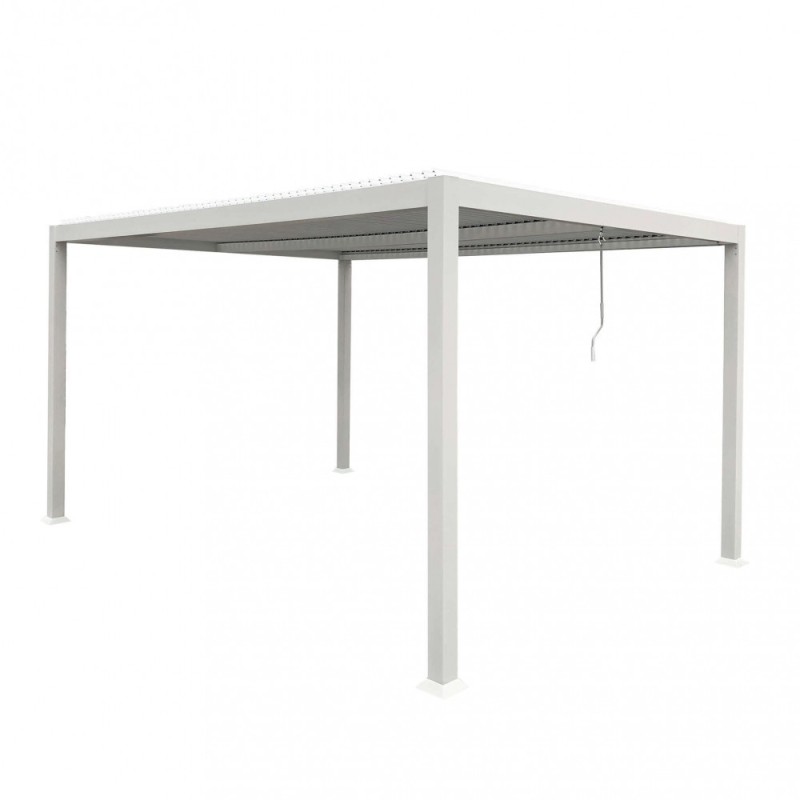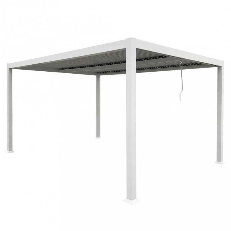 Struttura in alluminio bianco o grigio scuro copertura a lamelle frangisole orientabili a movimentazione manuale resistente a tutte le intemperie Dimensioni: m 3 x 4 x 2,3 h SKU: GA802129-BIAN EAN: 8051811469649