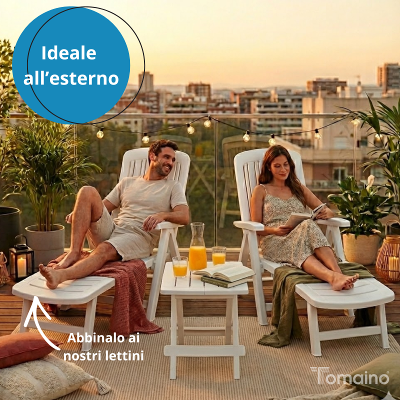 Progettato per offrire massima praticità, il tavolo plastica pieghevole basso Adige è un tavolino basso d’appoggio pieghevole pensato per l’uso quotidiano. Realizzato in plastica resistente, è adatto sia per ambienti interni che per esterni. Si apre e si chiude in pochi secondi, occupando pochissimo spazio quando non serve. È ideale come tavolino porta oggetti, piano d’appoggio per caffè e drink, o come tavolo pieghevole da campeggio. Leggero e facilmente trasportabile, unisce funzionalità, design moderno e versatilità per casa, giardino, terrazzo o balcone.
