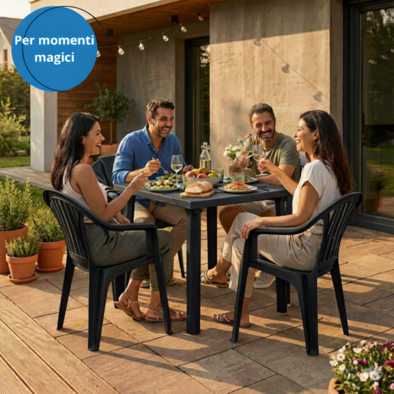 Il Tavolo in plastica da giardino quadrato Weekend è la scelta giusta per chi cerca un tavolo per esterno resistente, compatto e funzionale, perfetto per casa, giardino e tempo libero.