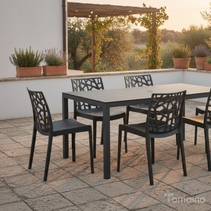 Il colore antracite è versatile e facilmente abbinabile a tavoli da esterno, arredi moderni e ambienti contemporanei, garantendo un risultato estetico equilibrato sia in contesti residenziali sia commerciali.