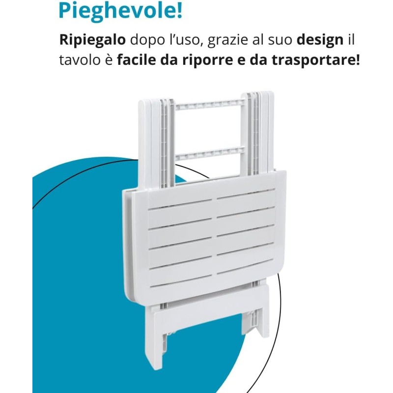 Realizzato in polipropilene impermeabile, questo tavolo pieghevole è pensato per un utilizzo reale e continuo. La struttura richiudibile permette di riporlo facilmente quando non serve, rendendolo ideale come tavolino richiudibile per ospiti improvvisi o come prolunga tavolo ospiti. È adatto a giardino, terrazzo e balcone, ma anche a cucina e taverna. Il piano a doghe offre stabilità e un aspetto ordinato, mentre il materiale plastico garantisce resistenza agli agenti atmosferici. Perfetto come tavolo plastica da giardino, tavolo da campeggio pieghevole o tavolino in plastica resistente per uso quotidiano.