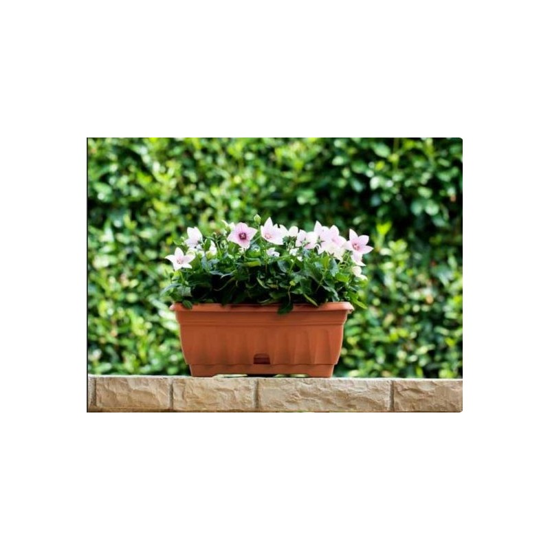 Forma rettangolare con disegno veneziano, pulito e ordinato, che riprende uno stile classico ma in chiave moderna. Il vaso, dalla forma classica, è rifinito con attenzione nei particolari. Il Vaso è realizzato in plastica resistente al gelo, facile da pulire da residui di terra e calcare è al 100% riciclabile può essere smaltito nella raccolta della plastica.