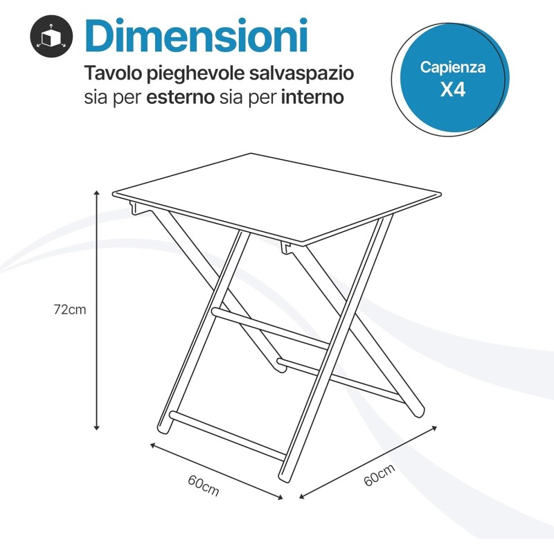Il "Tavolo pieghevole in legno 60x90" è la soluzione perfetta per chi cerca praticità e stile in spazi ristretti. Ideale per uso interno ed esterno, questo tavolo pieghevole non solo aggiunge eleganza al vostro arredo, ma offre anche una soluzione versatile per ospiti inaspettati o per un picnic improvvisato.
