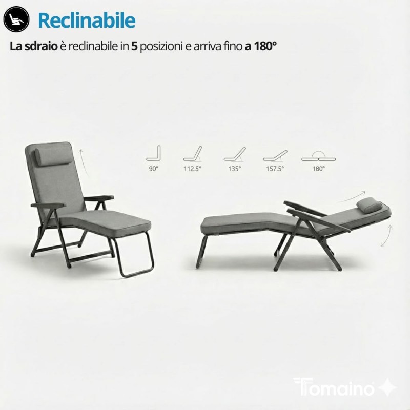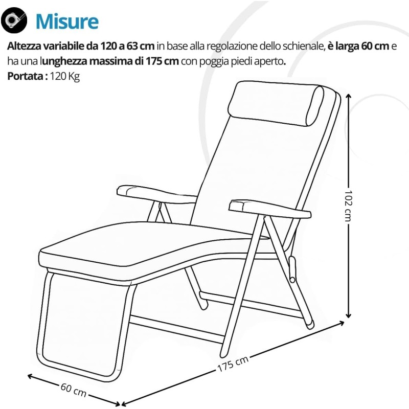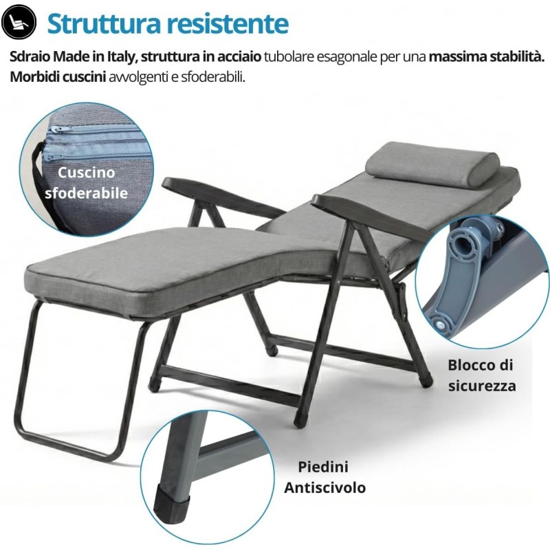 Sdraio Barbara reclinabile 180° cuscino imbottito 7 posizioni – Metal Far