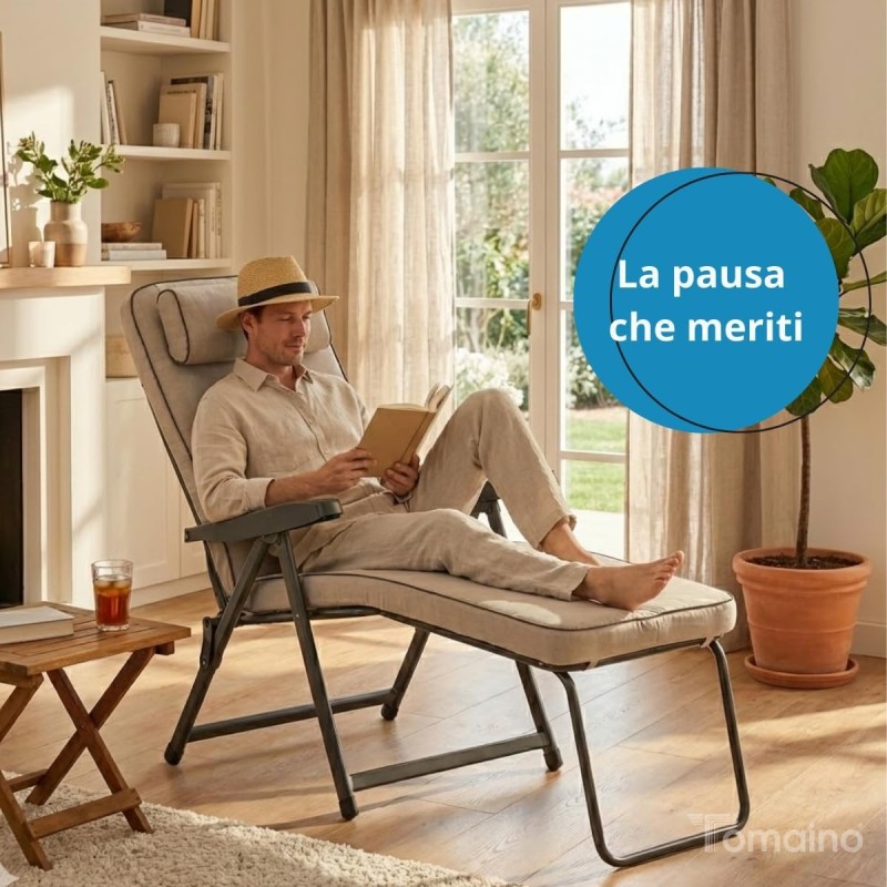 La Sedia sdraio imbottita pieghevole Paradiso con poggiapiedi è la soluzione ideale per un relax ergonomico, regolabile e Made in Italy, dentro e fuori casa.
