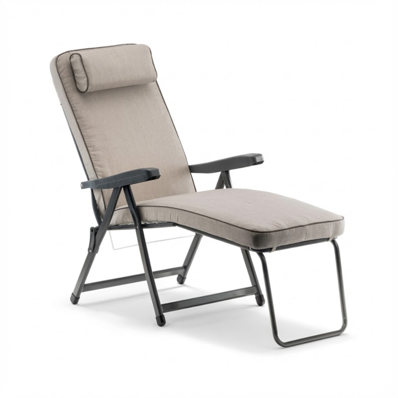 La Sedia sdraio imbottita pieghevole Paradiso con poggiapiedi offre un relax personalizzato grazie al poggiapiedi regolabile manualmente, indipendente dallo schienale, ideale per casa e outdoor.