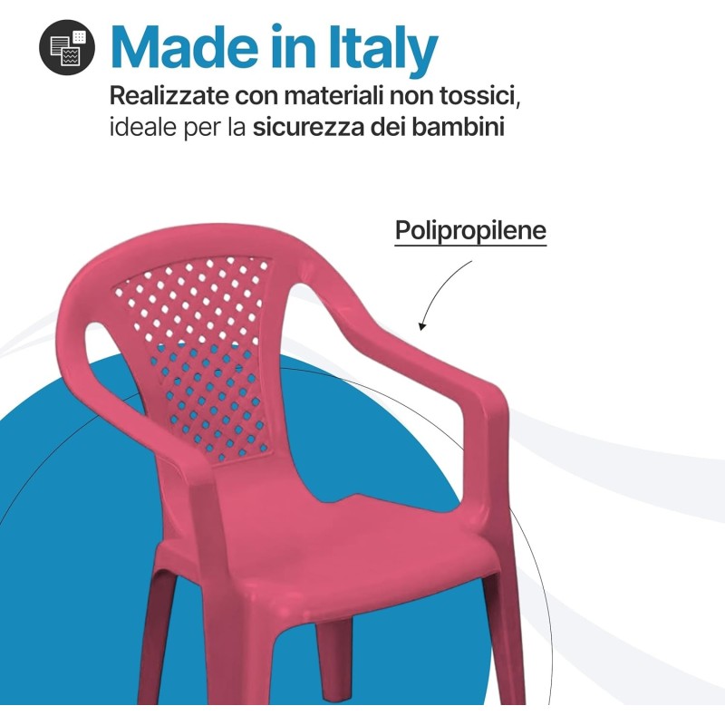 La sedia per bambini colorata Camelia è una soluzione pratica, sicura e Made in Italy, perfetta per accompagnare i bambini nelle attività quotidiane con comfort e colore.
