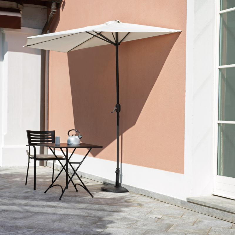 L'ombrellone da parete ø3 mt è la soluzione ideale per chi desidera godere del proprio spazio esterno, proteggendosi efficacemente dal sole. Questo ombrellone da giardino per esterno, progettato per essere montato contro il muro, offre una protezione ottimale dai raggi UV e un design intelligente.