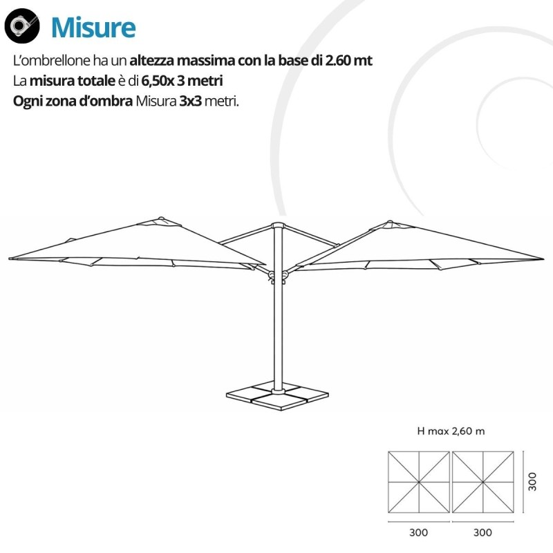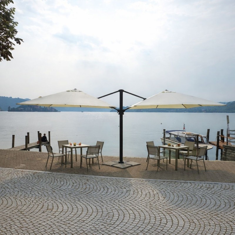 L’ombrellone doppio professionale in alluminio 2x3x3 è la soluzione ideale per bar, ristoranti, hotel e grandi spazi outdoor che necessitano di ampia ombreggiatura con ingombro ridotto. Grazie al palo centrale unico e alle due coperture indipendenti 3x3 metri, consente di creare due zone d’ombra distinte ottimizzando spazio, stabilità e gestione operativa.