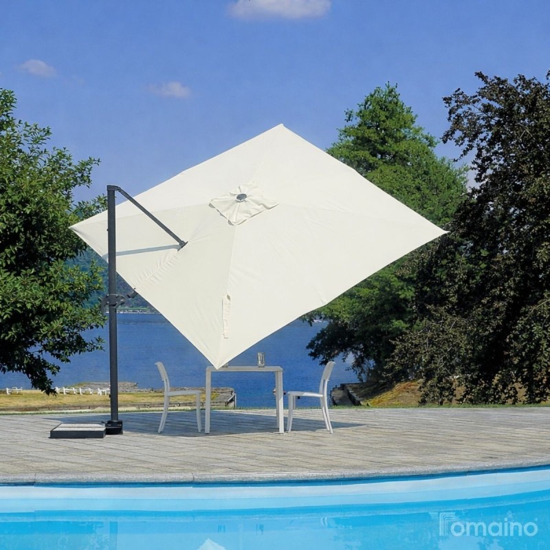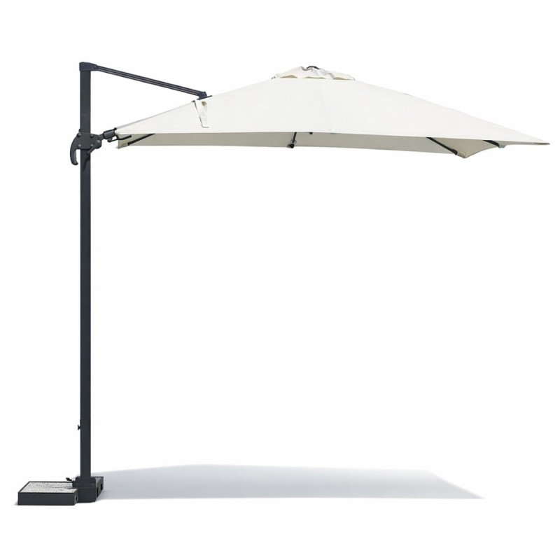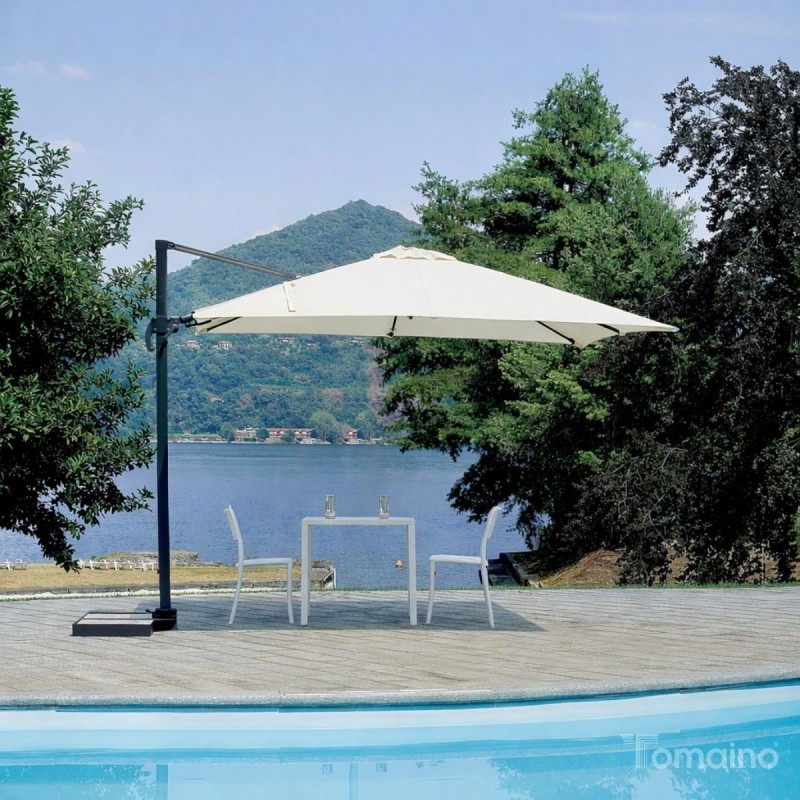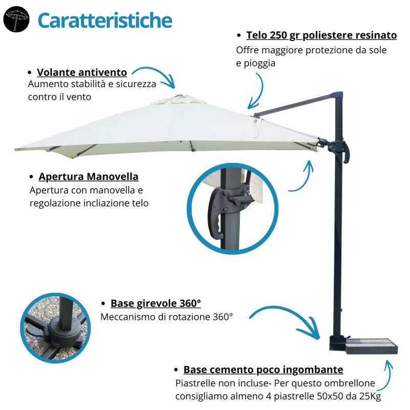La struttura dell’ombrellone 3x3 in alluminio è progettata per garantire stabilità e resistenza agli agenti atmosferici. Il palo laterale decentrato in alluminio antracite (77x53 mm) assicura solidità strutturale e resistenza alla corrosione, rendendolo ideale per uso continuativo outdoor.