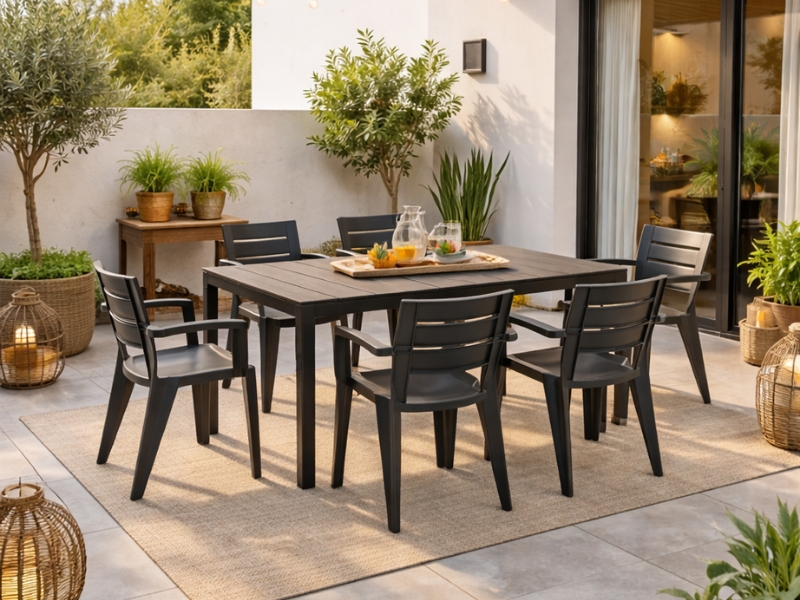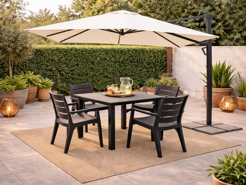 Tavolo autolivellante in metallo verniciato a polvere antracite Dimensioni: cm 80 l x 80 p x 110,5 h